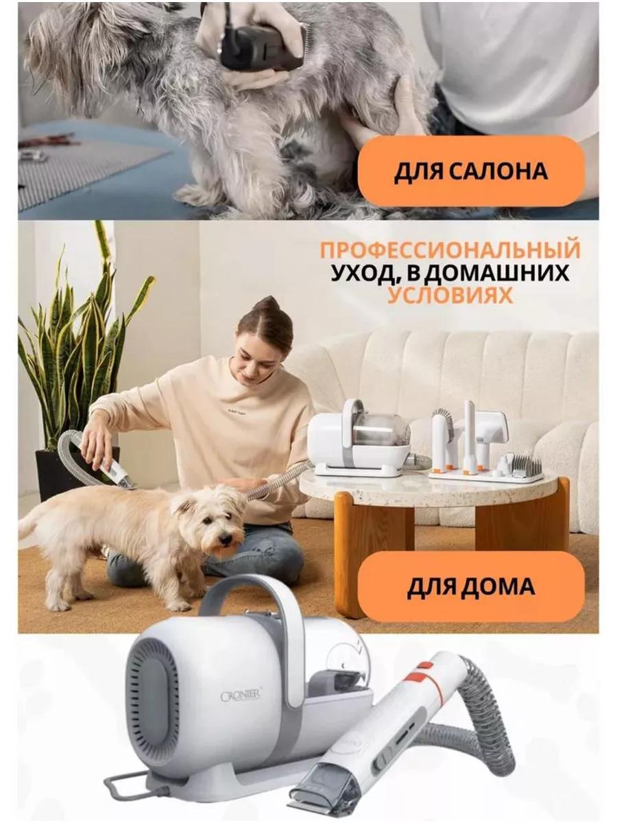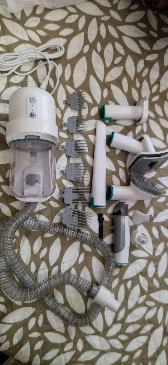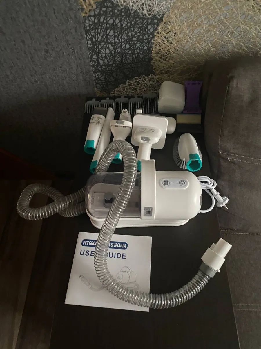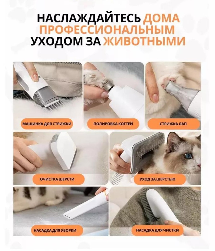 Благодаря мощному всасыванию, аппарат эффективно удаляет шерсть, грязь и пыль с шерсти вашего питомца, делая его внешний вид более ухоженным и красивым. Вакуумный аппарат для груминга 7 в 1 подходит для ухода за собаками и кошками. В комплекте вы получаете белую коробку и инструкцию, что делает использование аппарата удобным и простым.