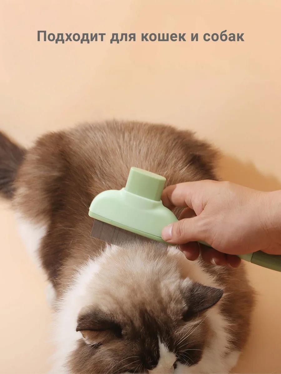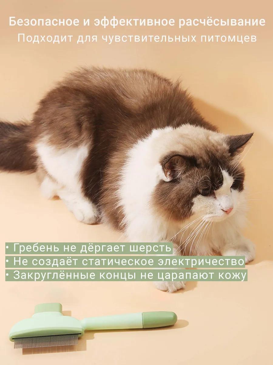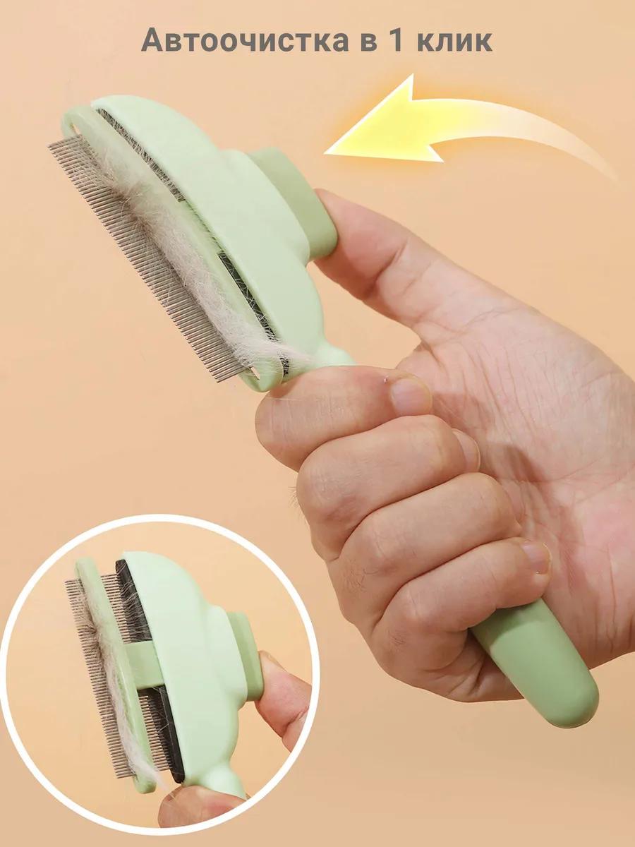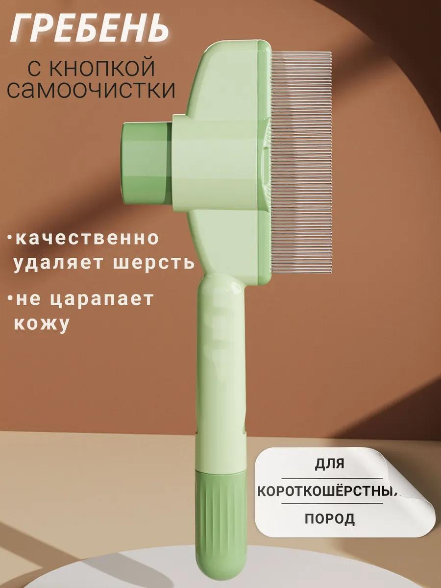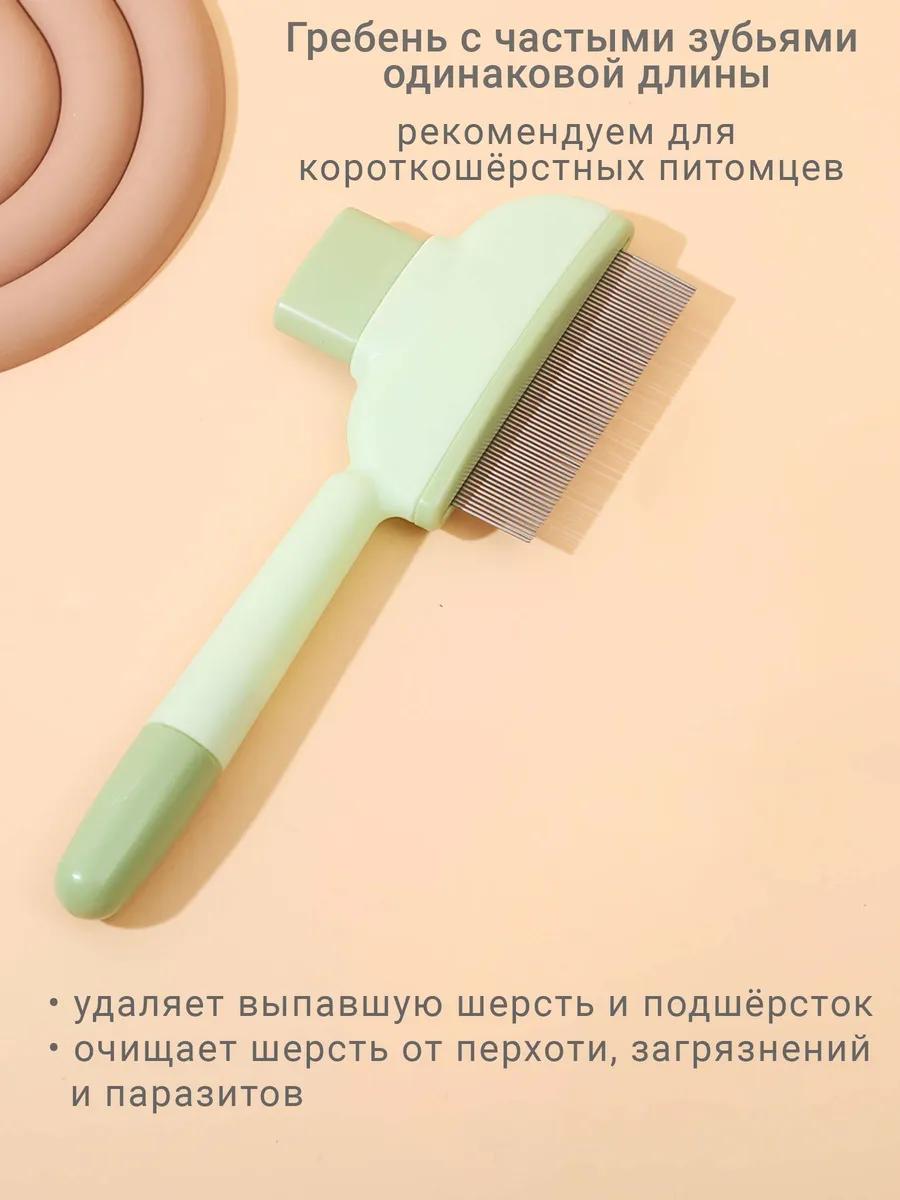 Удобная расческа-гребень с кнопкой автоочистки с густыми зубцами одинаковой длинны - эффективное удаление подшерстка. Подходит для кошек, собак и других питомцев с короткой и средней длиной шерсти. Можно использовать для ухода за животными с чувствительной кожей – закругленные зубцы гребня не царапают и не раздражают нежную кожу, не дергают шерсть и не создают статического электричества. Эффективный для вычесывания густого подшёрстка, расчёсывания и очищения шерсти, мягко массирует кожу. Подходит для удаления паразитов, перхоти, грязи с шерсти животных. Многофункциональный гребень замена различным расческам и щеткам для домашнего груминга.